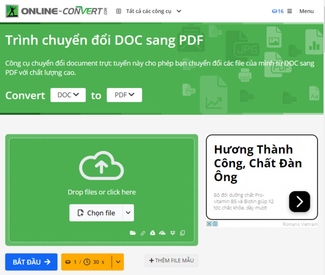 Online-Convert cung cấp nhiều chức năng nâng cao như điều chỉnh DPI, đổi kích thước trang, cài đặt mật khẩu cho file PDF đầu ra. Giao diện web Online-Convert hơi nhiều thông tin nhưng vẫn dễ hiểu với người quen dùng công nghệ. Ngoài tính năng chuyển từ Word sang PDF, công cụ còn hỗ trợ chuyển đổi ảnh, video, ebook,… rất linh hoạt.
